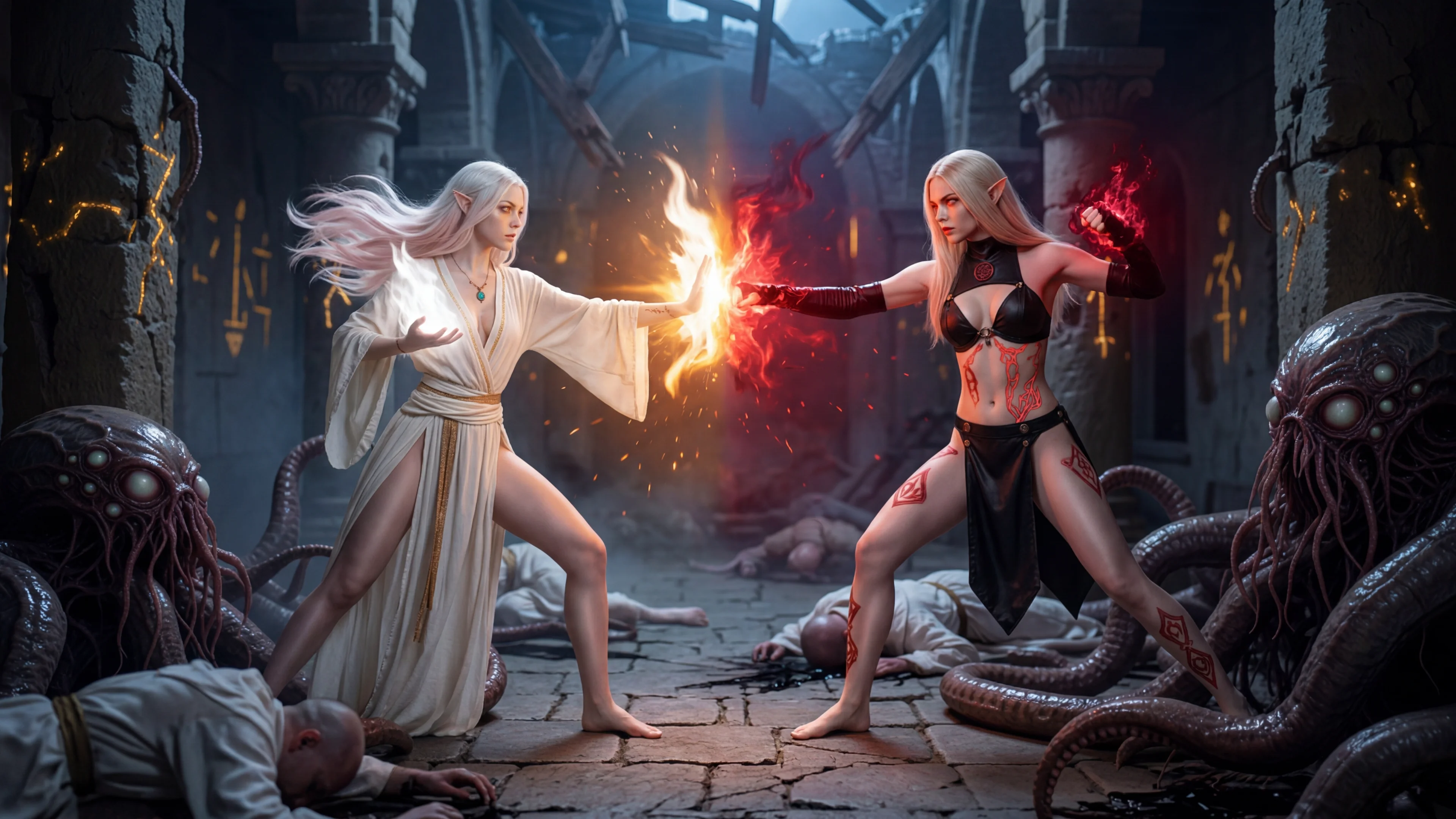 Ramayi embodies their father’s doctrine — calm, restrained, measured. In killing Aethrion, Xyrilia did not merely commit ideological rebellion. She shattered her sister. She robbed Ramayi of an anchor and left grief in its place.
